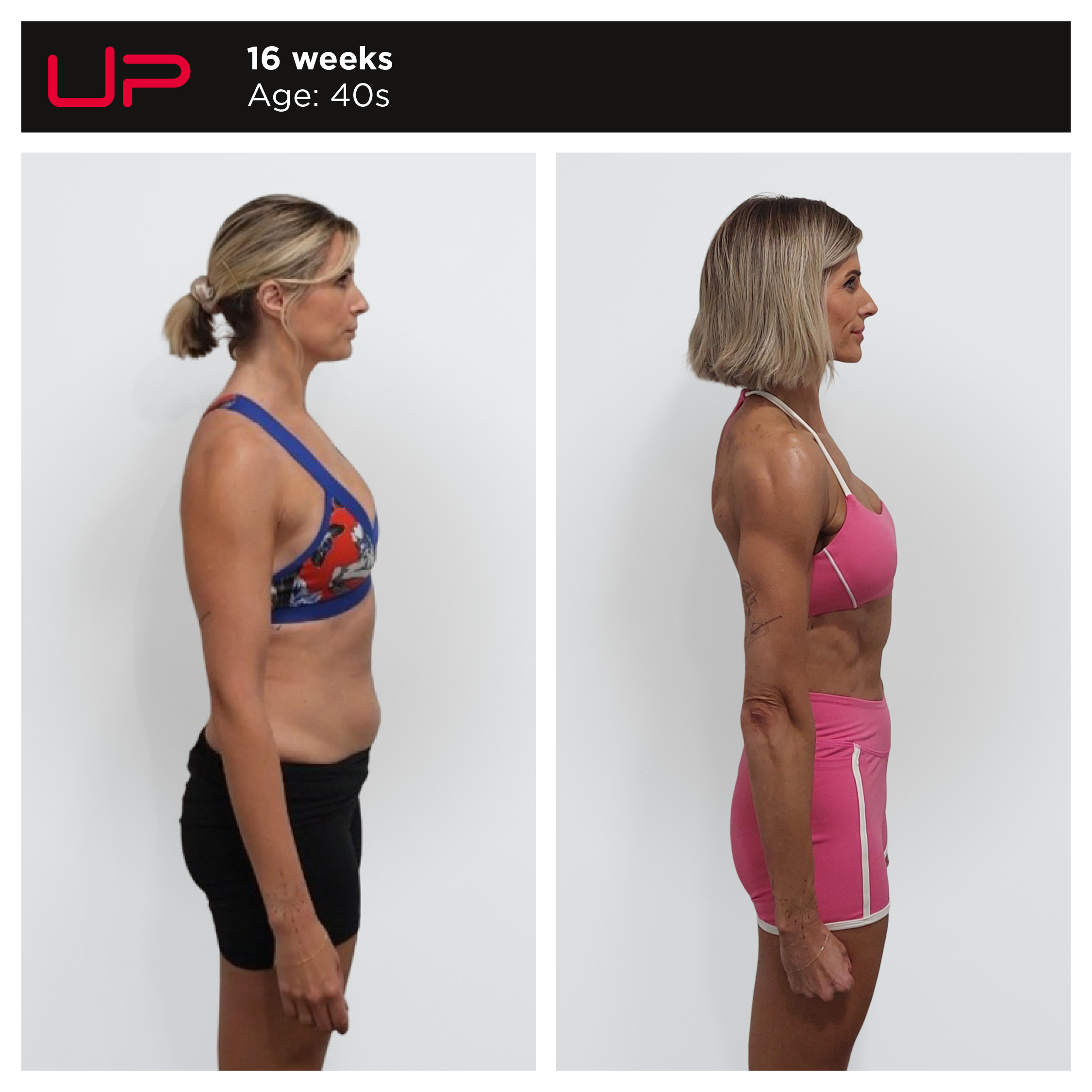 “Now being in my early 40s, last time I did a transformation at U.P. I was in my early to mid-30s. So I wanted to get back up to my sort of peak performance and peak strength. I wanted to have more energy again and I now do my pole fitness, so I wanted something that would complement the upper body strength needed for that.”