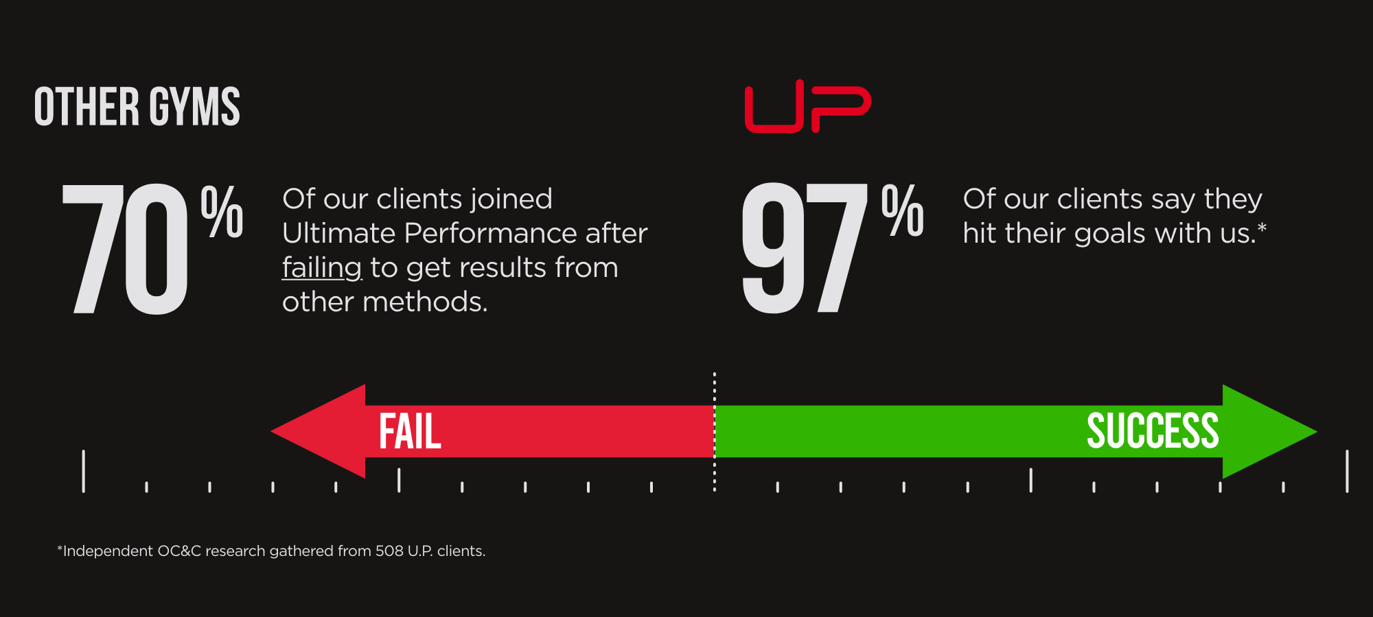 No other ‘fitness solution’ comes close. It’s why 97% of clients hit their goals with us. What makes us different? These three factors show why there is No Comparison: