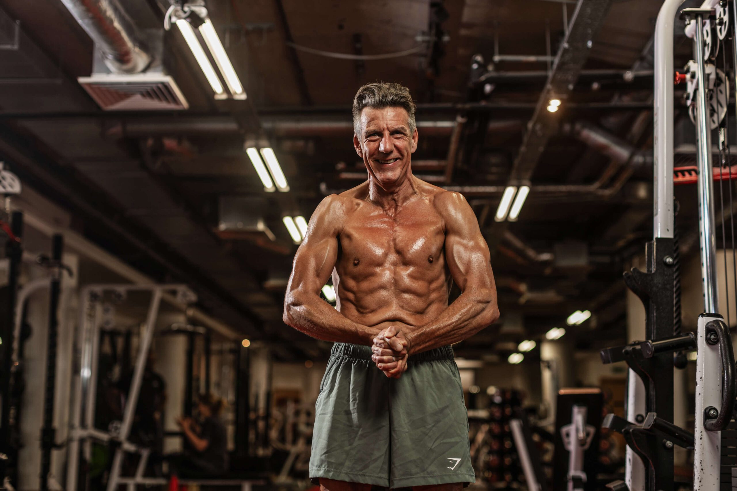 It’s odd having gone through 57 years, never having visible abs, to suddenly having them. At 57, it seems to impress a lot of people as well. You go into the gym, pick up a 15kg plate, and to think that I was carrying that around with me nine months ago.